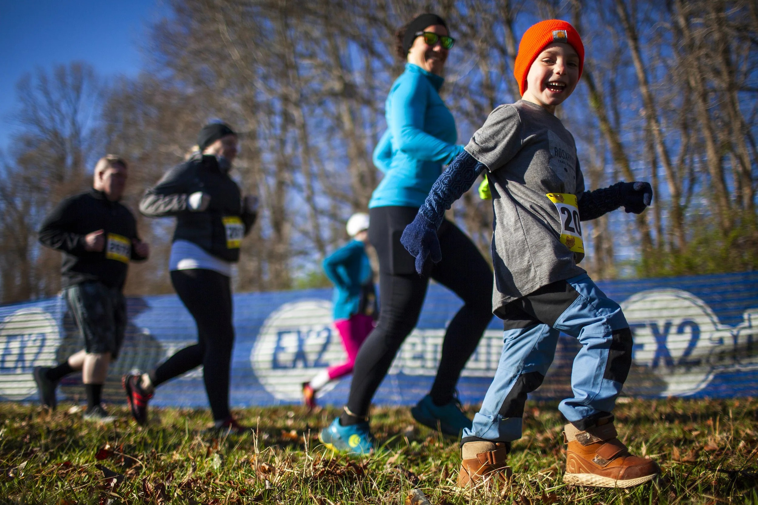 Sixteen years of racing at Rosaryville and EX2 added something new — a 5K, run early enough that the fast ones could double back and start the 10K, see the whole park in one morning. The trails were flowy. The sun was bright and contrasty in the woods, bare branches throwing hard shadows on the singletrack. Cool temps kept cooler by a persistent wind. The oaks still marcescent, holding last year's leaves. Down low the understory was pushing small green leaves — the season building from the ground up, same as the runners, most of them still early in their year, still finding their legs. They finished smiling. The kids closed it out with their own race and the kind of effort that doesn't know how to pace itself.